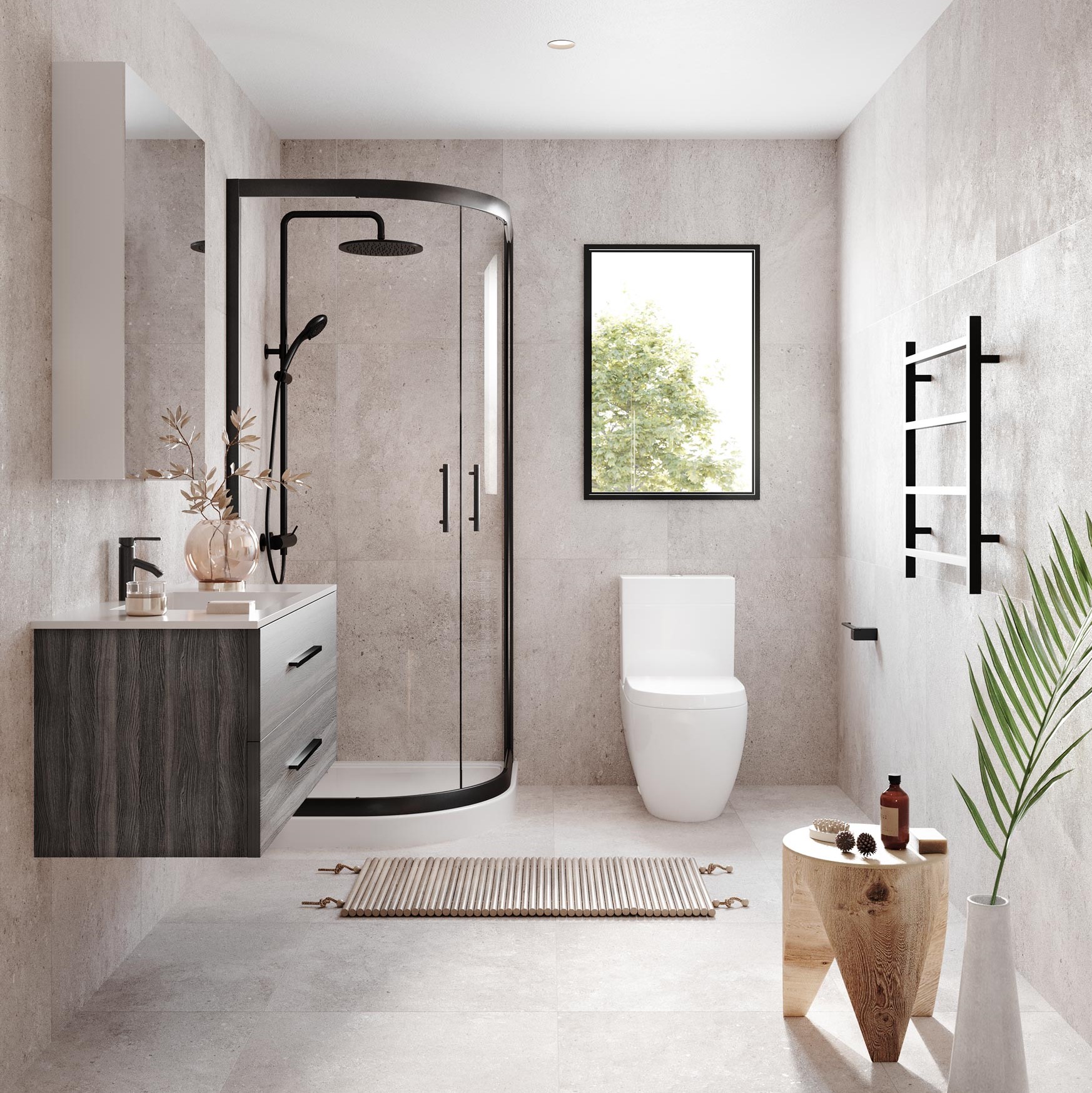 Stylish and minimalist, the bathrooms feature a fully tiled floor and walls, quality cabinetry with soft close drawers.